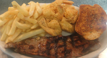 | Surf & Turf (Served with Salad or Cole Slaw, Hush Puppies, and Choice of Side Item) |